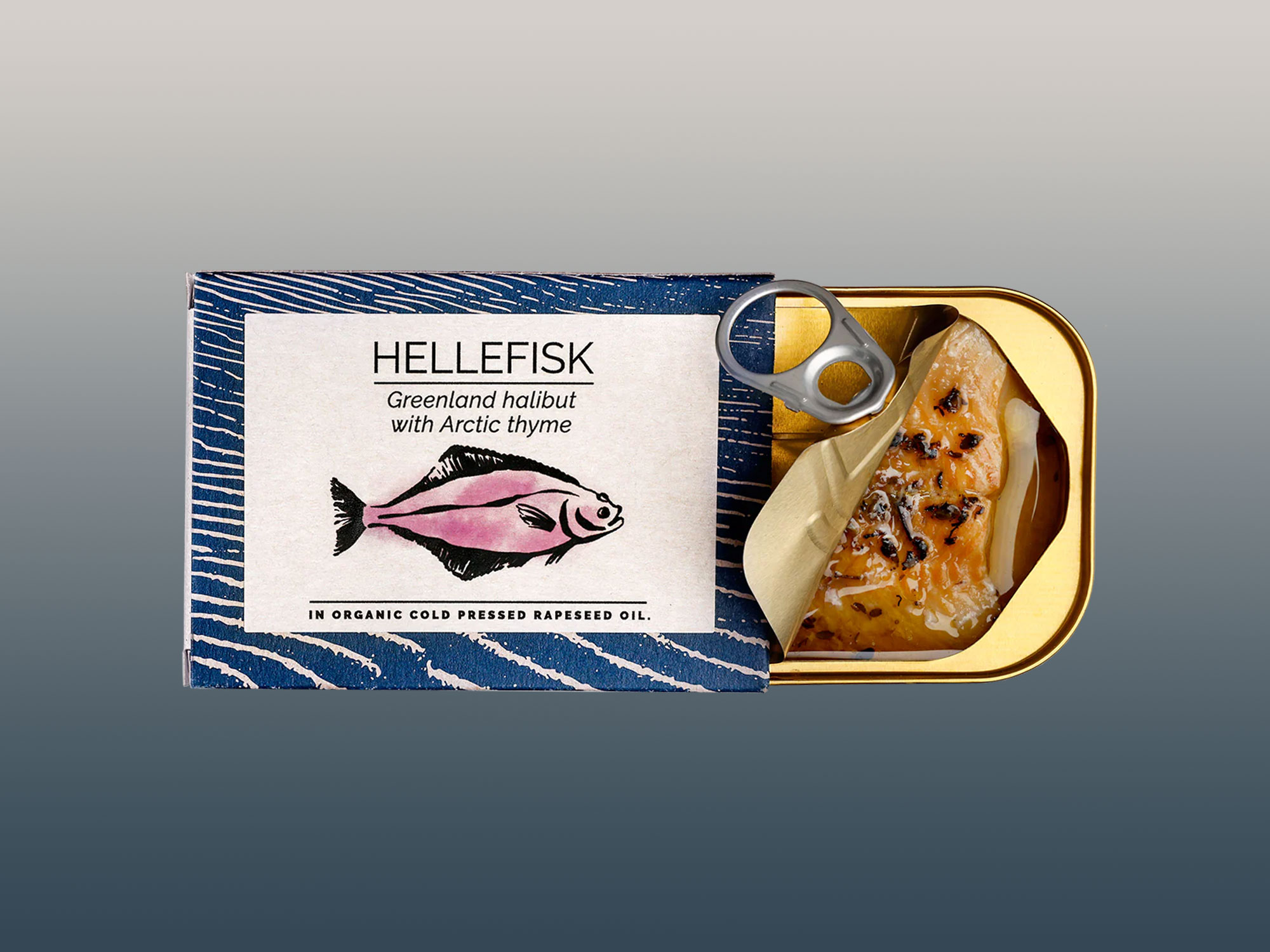 HEILBUTT (Reinhardtius hippoglossoides, 85.5%), kaltgepresstes Rapsöl* (13.7%), Salz, arktischer Thymian (0.2%) *aus ökologischem Anbau