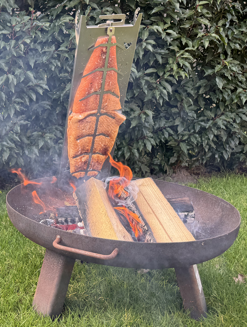 Die perfektes Lösung für die Herstellung von Flammlachs ist die Kombination vom Fennek Flammlachshalter und unserer frisch filetiertes Lachsfilet