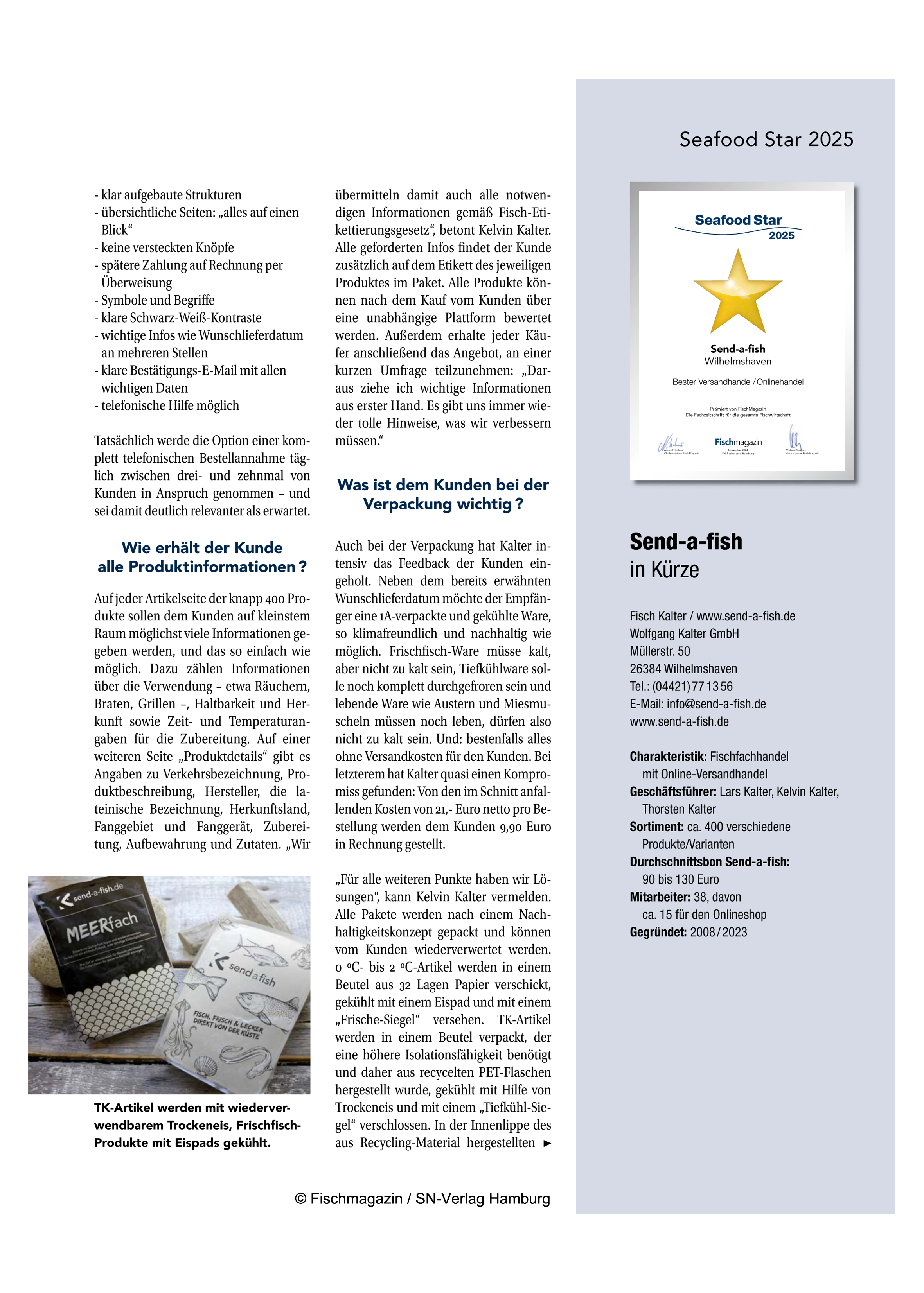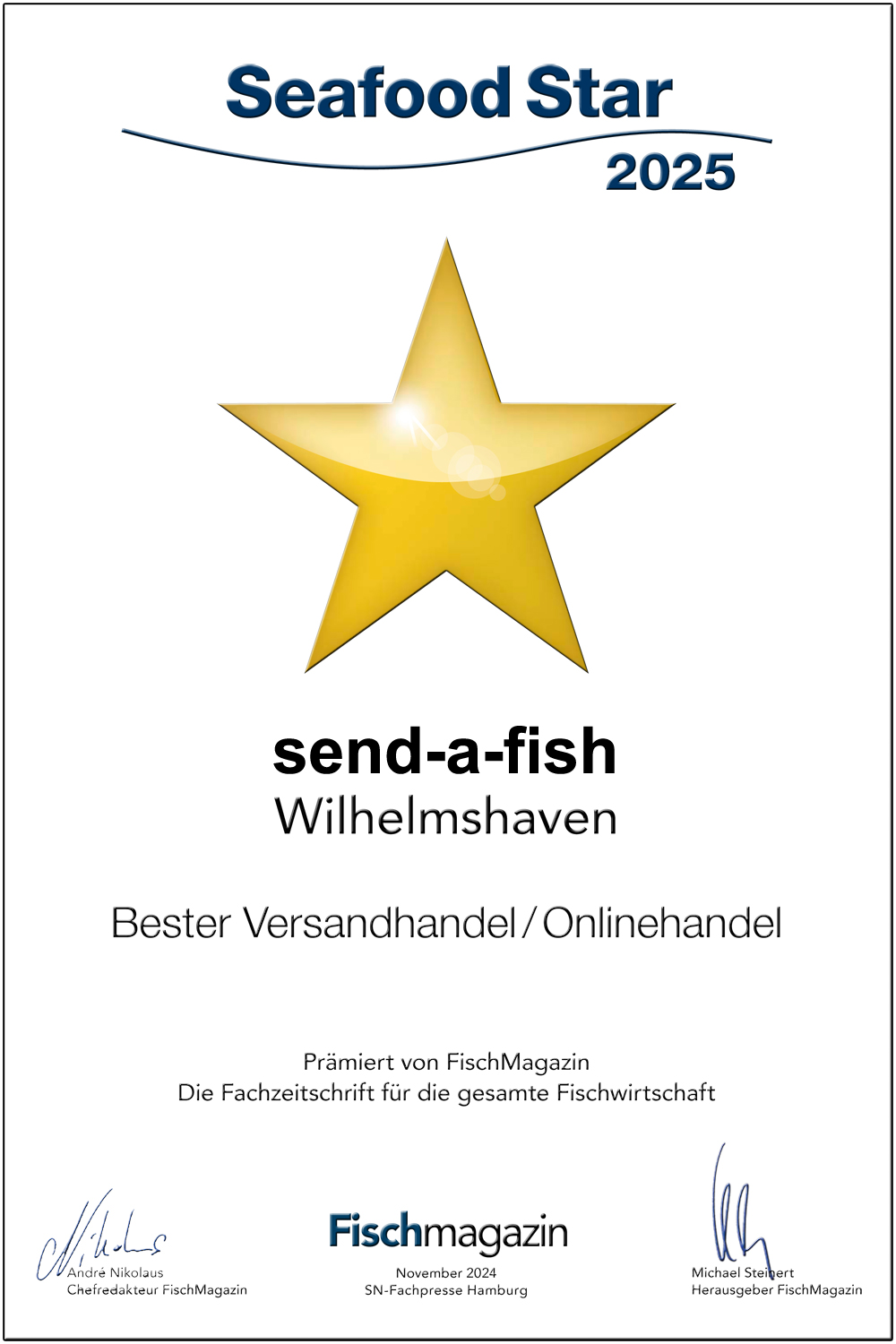 send-a-fish ist Seafood Star 2025 - Bester Fisch Onlinehandel