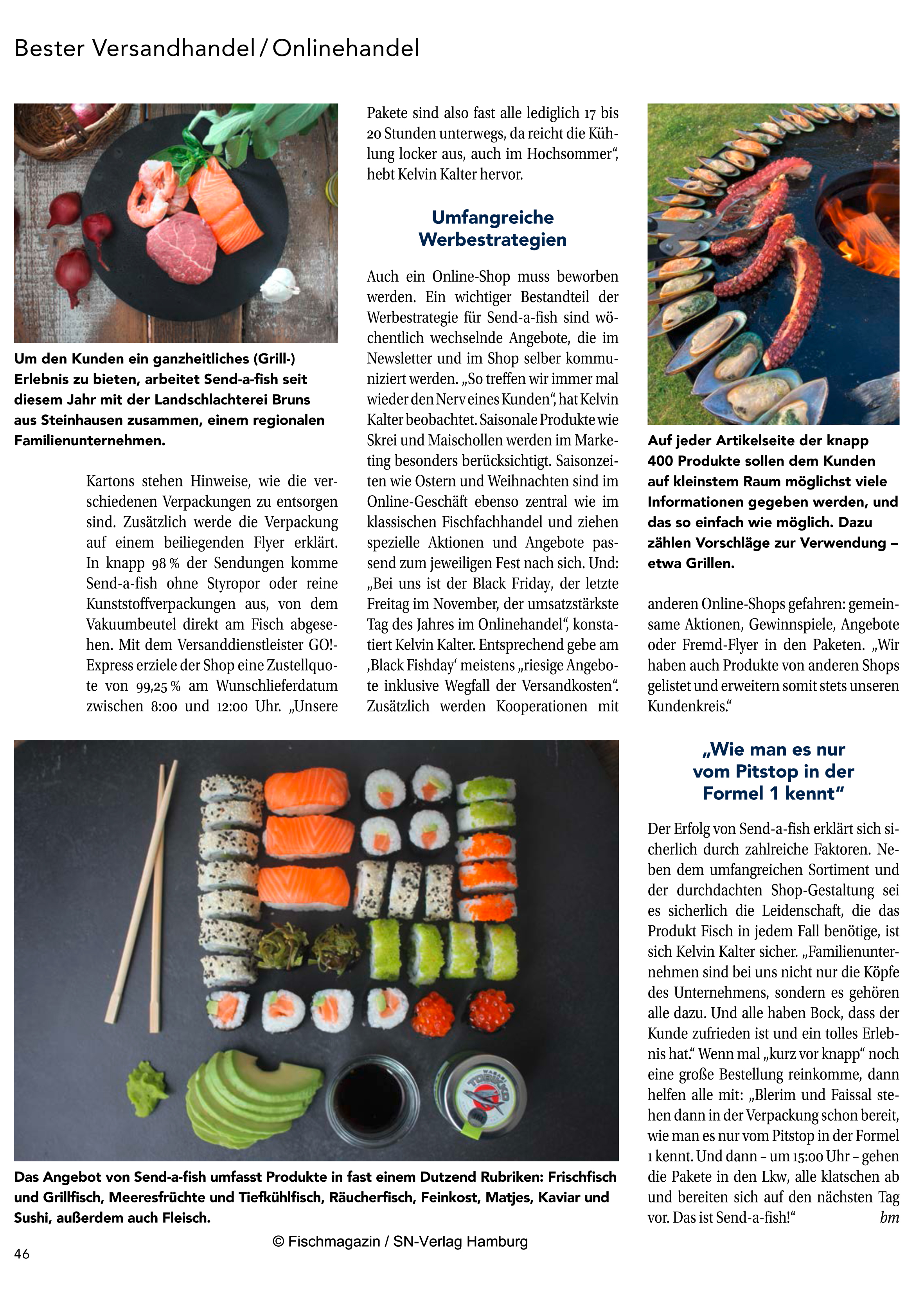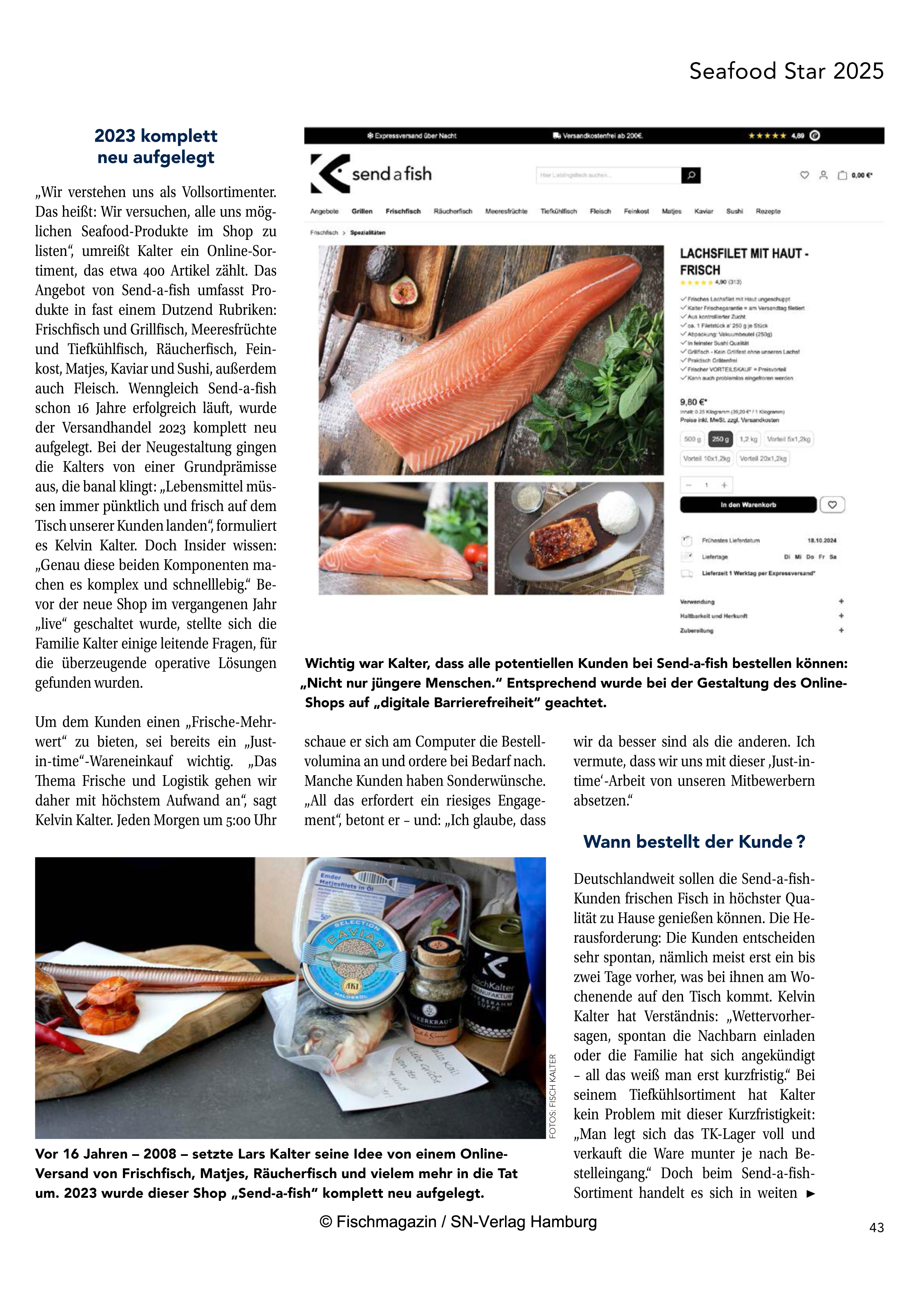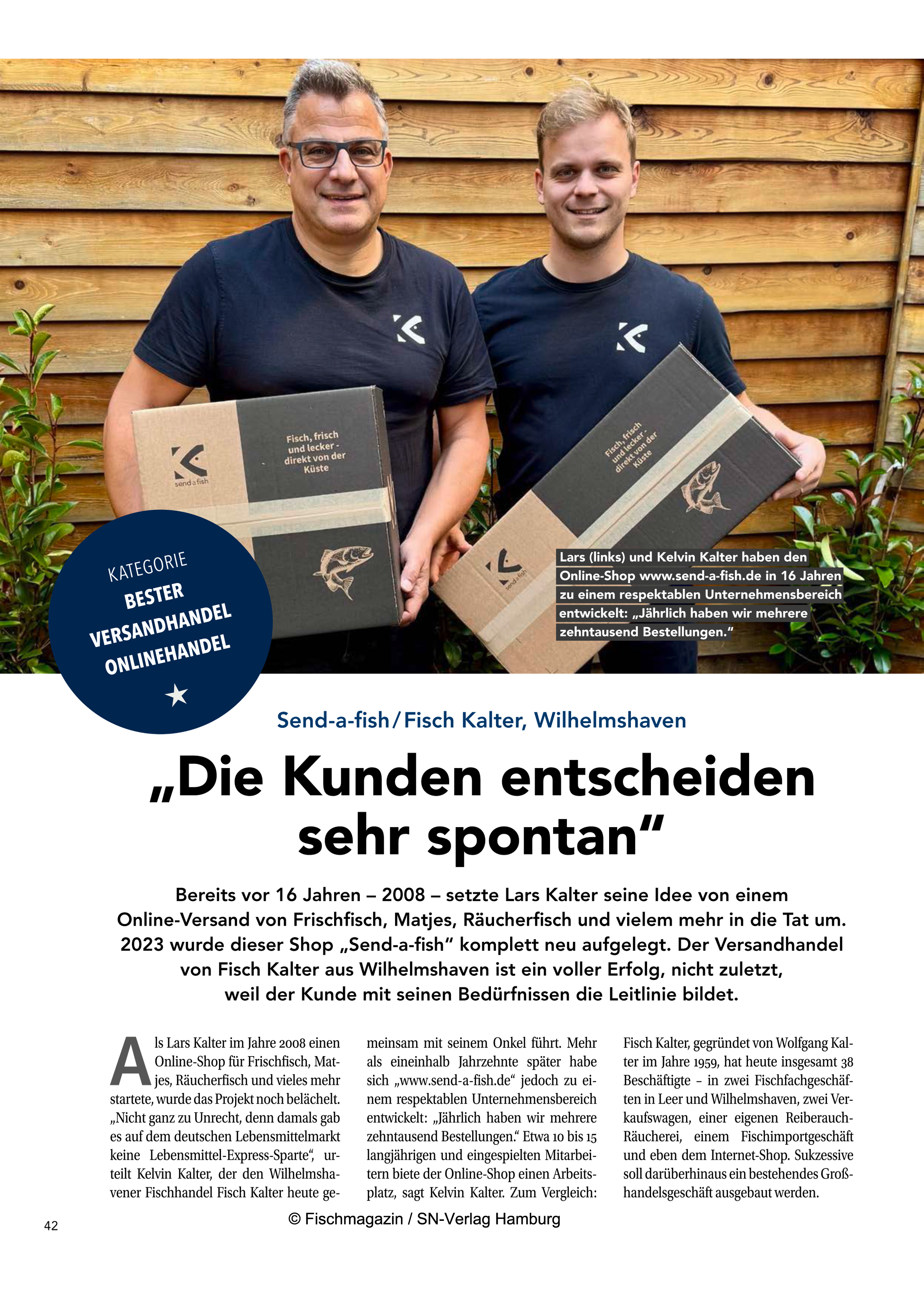 Zum Vergleich: Fisch Kalter, gegründet von Wolfgang Kalter im Jahre 1959, hat heute insgesamt 38 Beschäftigte – in zwei Fischfachgeschäften in Leer und Wilhelmshaven, zwei Verkaufswagen, einer eigenen Reiberauch- Räucherei, einem Fischimportgeschäft und eben dem Internet-Shop. Sukzessive soll darüber hinaus ein bestehendes Großhandelsgeschäft ausgebaut werden.