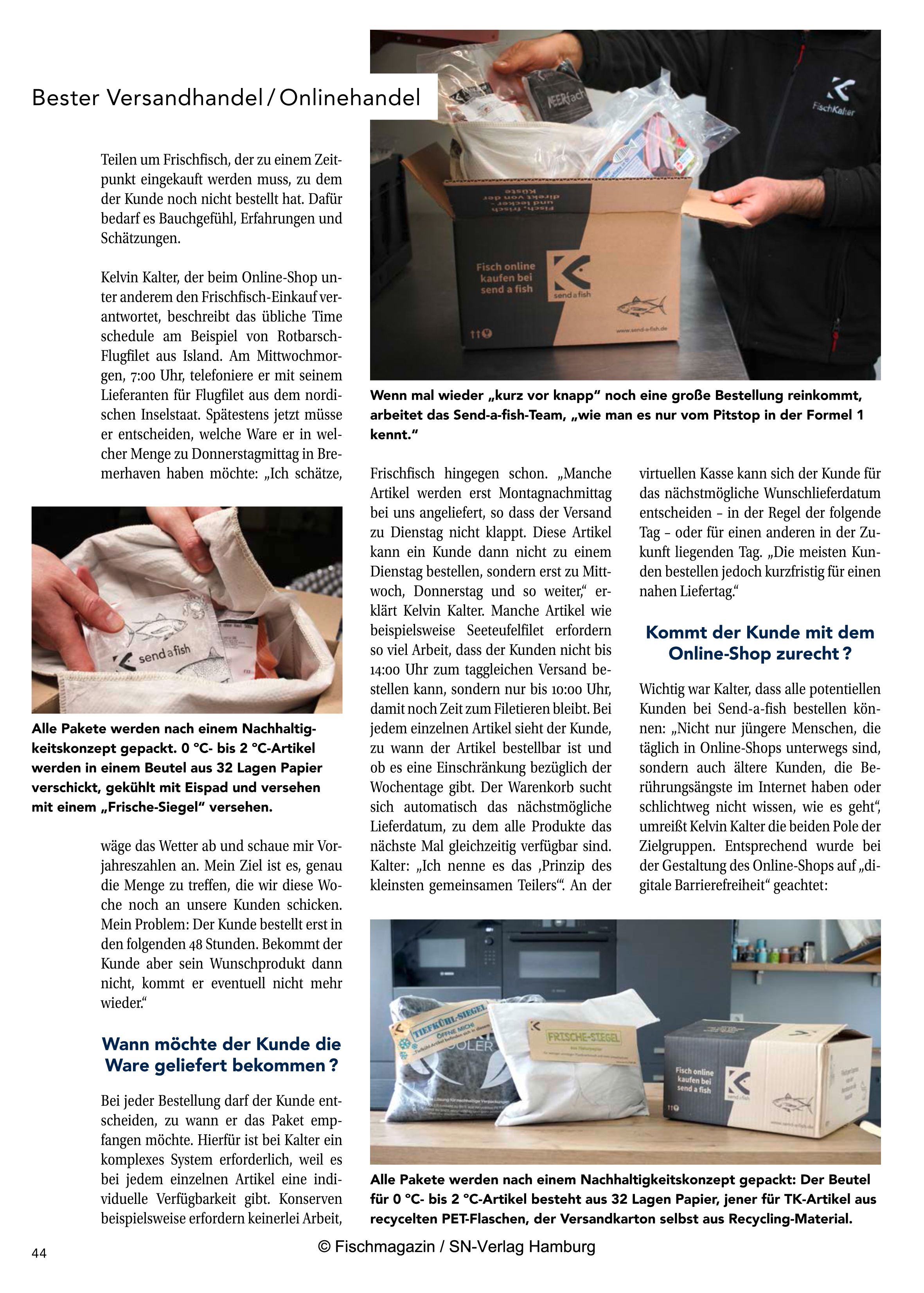 Mehr als eineinhalb Jahrzehnte später habe sich „www.send-a-fish.de“ jedoch zu einem respektablen Unternehmensbereich entwickelt: „Jährlich haben wir mehrere zehntausend Bestellungen.“ Etwa 10 bis 15 langjährigen und eingespielten Mitarbeitern biete der Online-Shop einen Arbeitsplatz, sagt Kelvin Kalter.